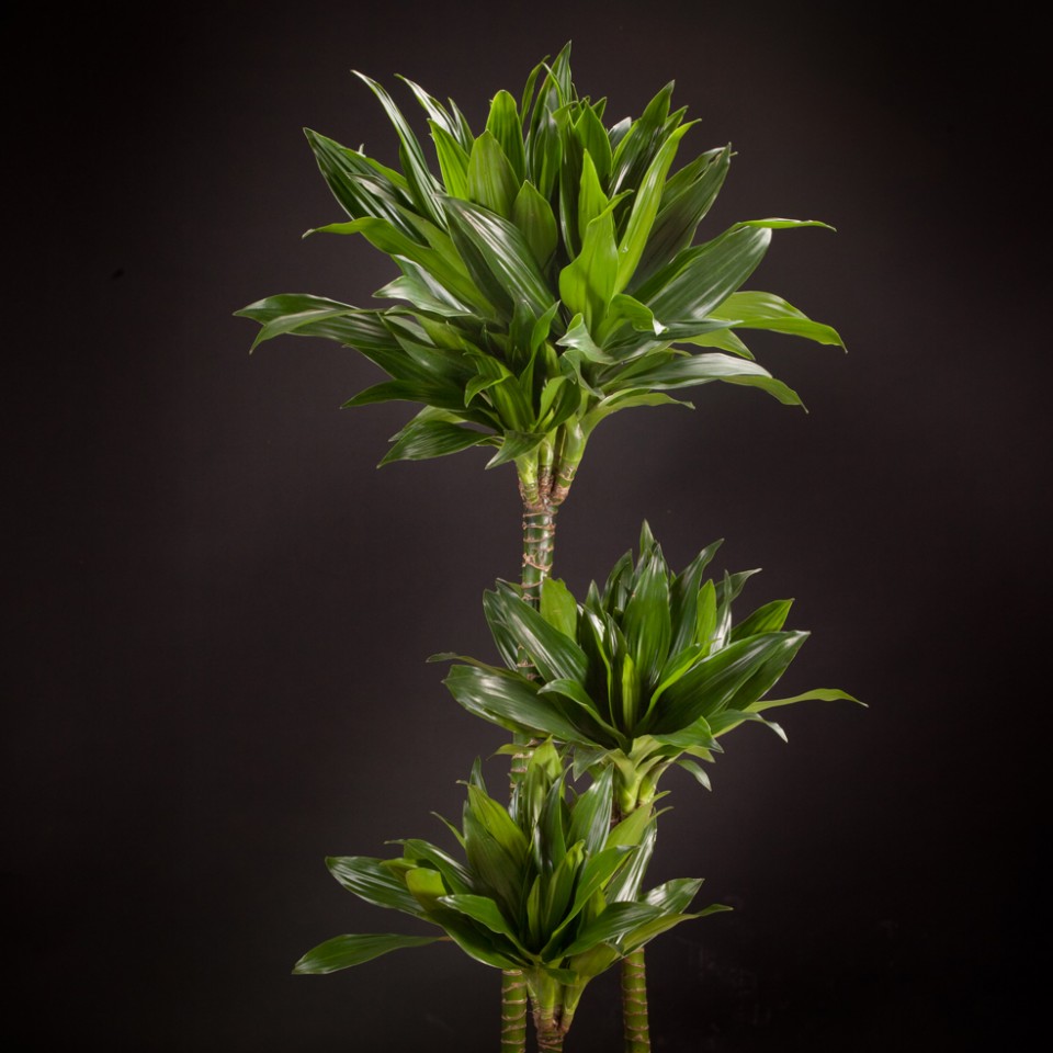 Diese kompakte Dracaena “Green Jewel”, mit ihren kräftigen Blättern, hat einen besonders auffälligen dunkelgrünen Farbton. Die verschiedenen Stämme dieser Dracaena “Green Jewel” machen diese Solitärpflanze zu einer attraktiven und pflegeleichten Pflanze.