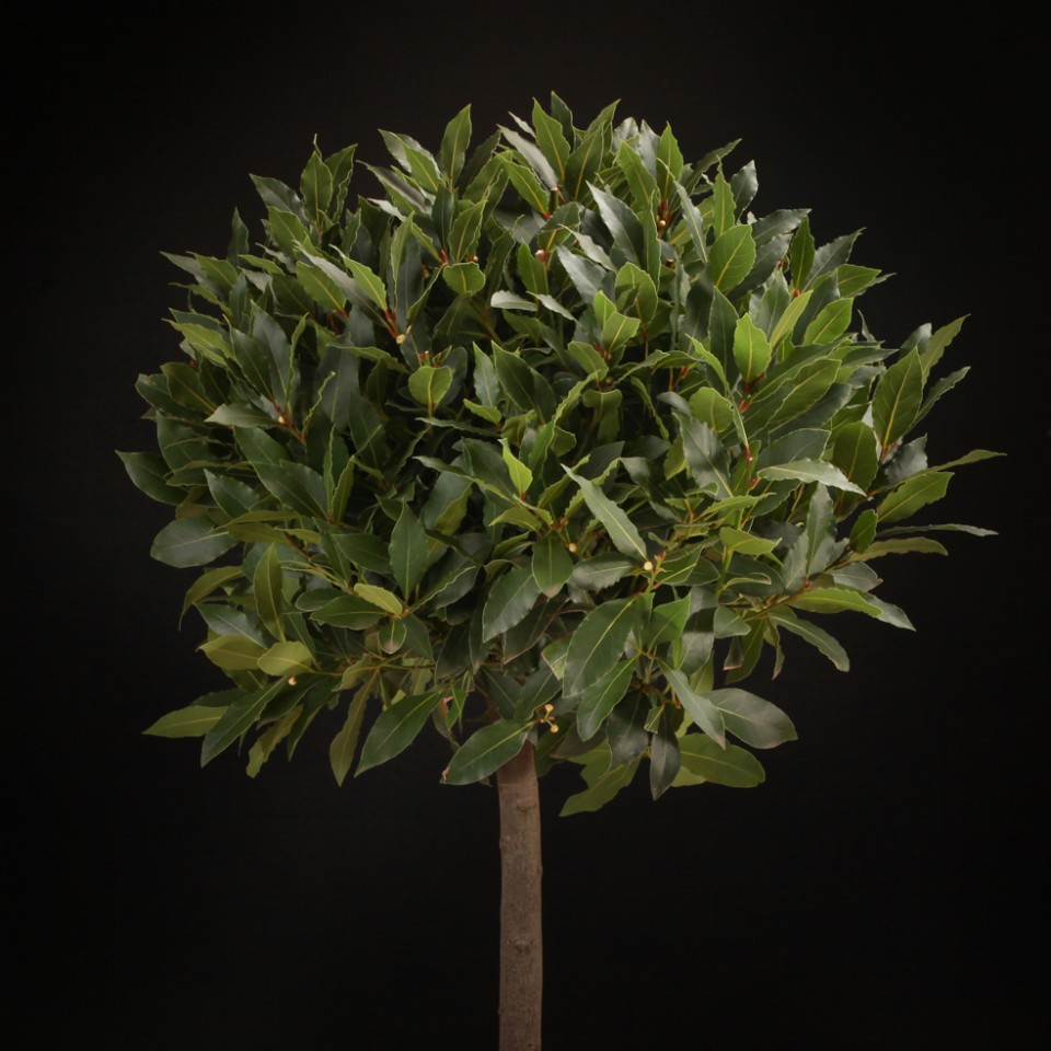Dieser Lorbeerbaum auf Stamm ist sieben Jahre alt und hat einen Kronedurchmesser von mindestens 45 cm.