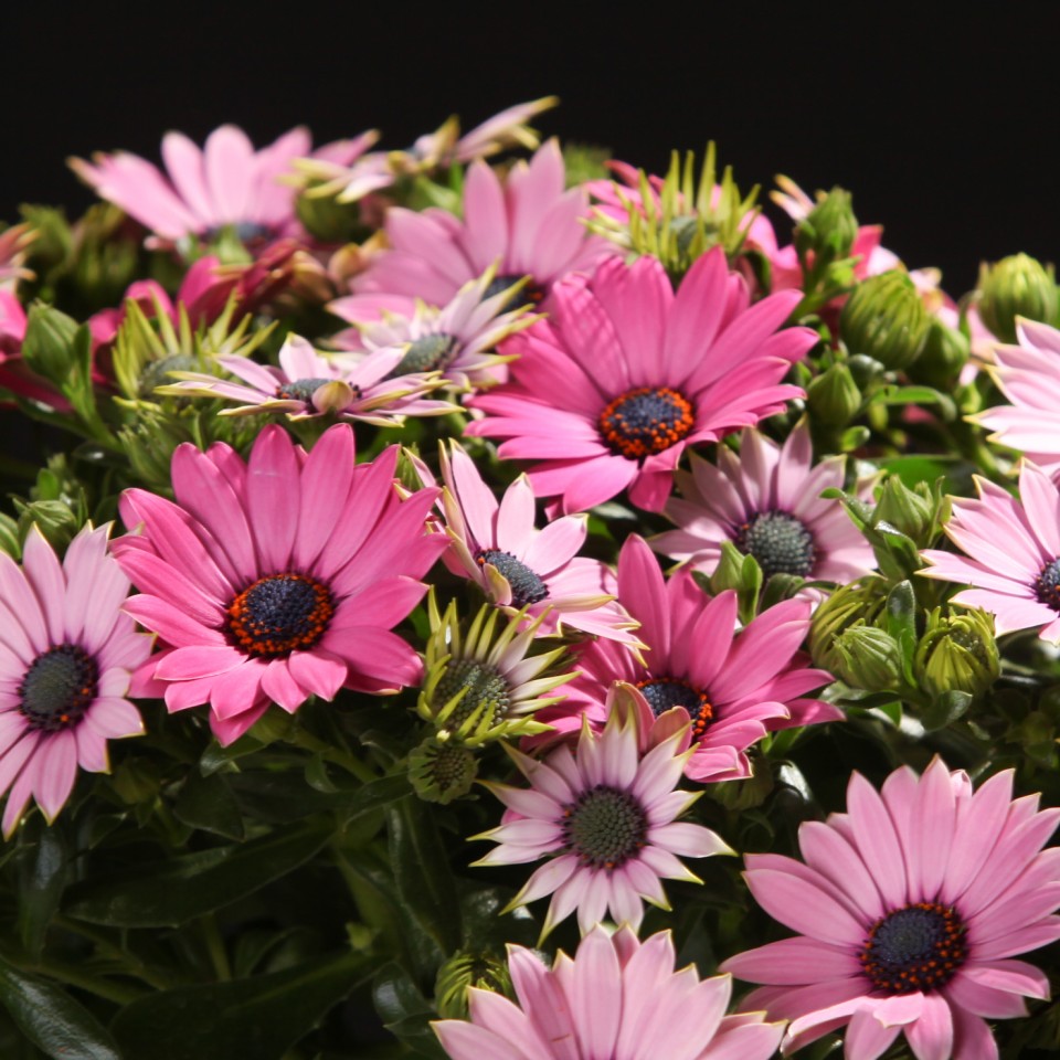 Die Osteospermum-Serie umfasst Hybriden, die durch viele Züchtungen mit Osteospermum ecklonis und Osteospermum jucundum entstanden sind. Die Pflanzen haben ihre ursprünglichen, guten Eigenschaften behalten. Sommerliche Hitze und Trockenphasen sind für sie kein Problem. Sie blühen von Mai bis zum ersten Frost im November. An bewölkten und regnerischen Tagen schließen sich die Blüten.