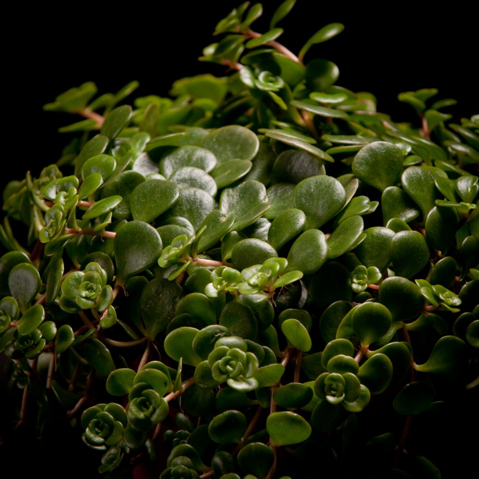 Zur Gattung der Sukkulenten oder Fettpflanzen gehören ein paar tausend Arten, die weltweit verbreitet sind. Sukkulenten speichern in ihren dicken, fleischigen Blättern Wasser für trocknere Zeiten. Sedum makinoi Tornado stammt ursprünglich aus Japan, wo Varianten der Pflanze vorkommen mit grünen oder gelben Blättern.