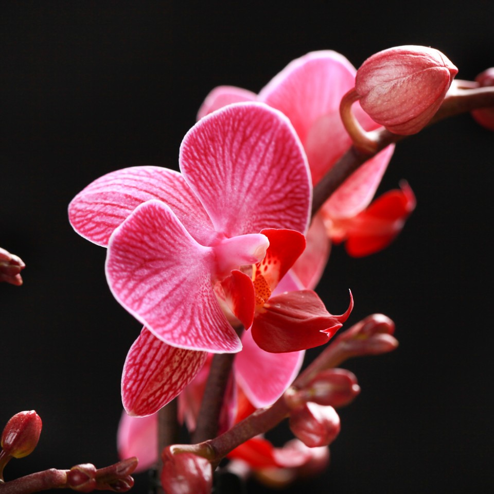 Diese exotische Phalaenopsis “Moldavie” ist lange haltbar. Mit ihrer eigenartigen Blütenform und der rot-weiß geaderten Blüte, ist diese “Moldavie” ein stilvoller “Tropischer Dschungel” in jedem Raum.